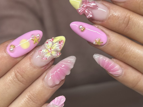 I work part-time as a teacher aide and part-time as a nail tech - and this is where I get to be creative and have fun. I’m trained and certified in gel application, builder gel and gel extensions, and all my nail art skills are self-taught (and definitely my fave part of the job).